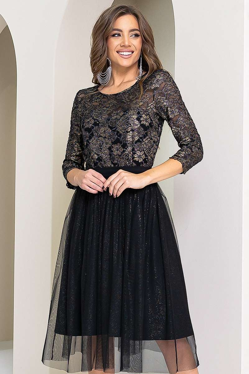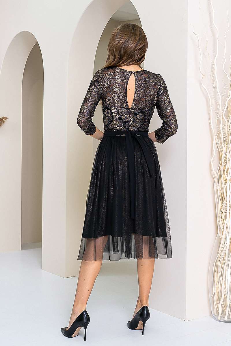 Мереживна Чорна Коктейльна Срібна Сукня Гіпюр 21147 з пишною спідницею і короткими рукавами це чиста романтика зі щіпкою спокуси!